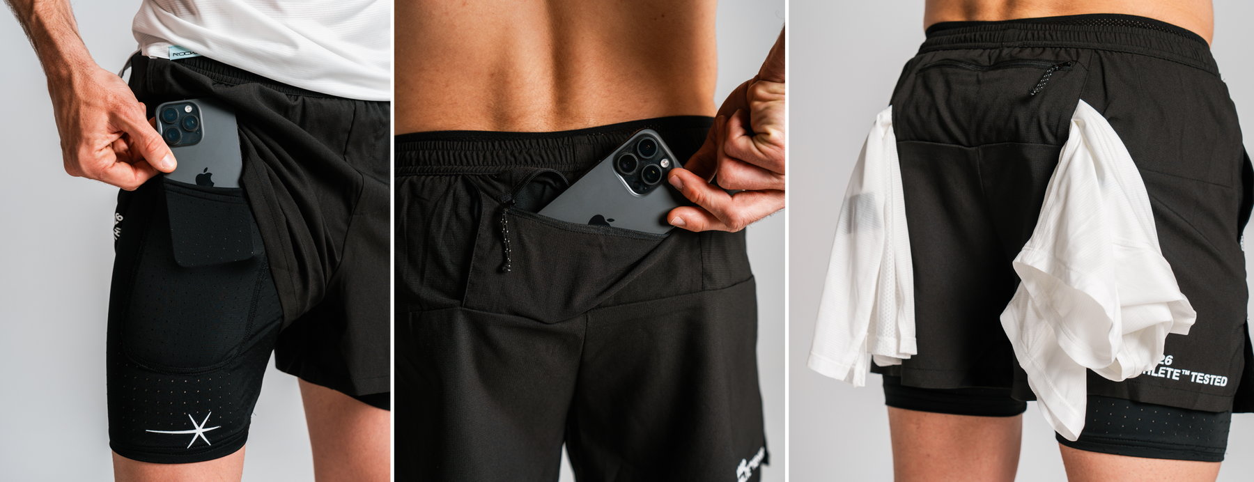 Bolsillos diseñados para la utilidad del deportista, tanto en entrenamiento como en carrera, facilitando lugares donde poder guardar el teléfono, los geles o incluso la camiseta.